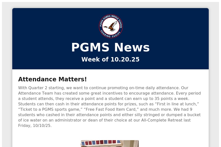 PGMS News Week of 9.29.25 Greetings! Thank you for staying connected by reading our weekly newsletter! Please reach out anytime with suggestions for improvement or simply t. . .